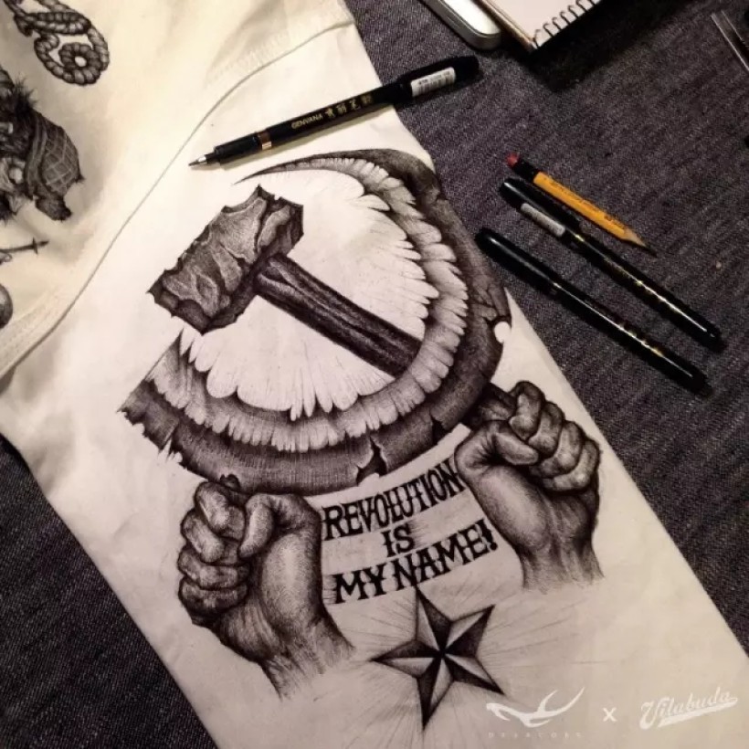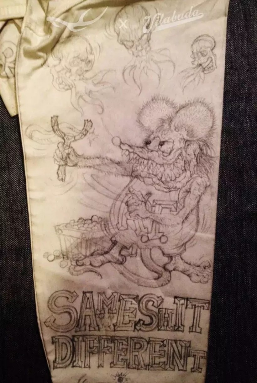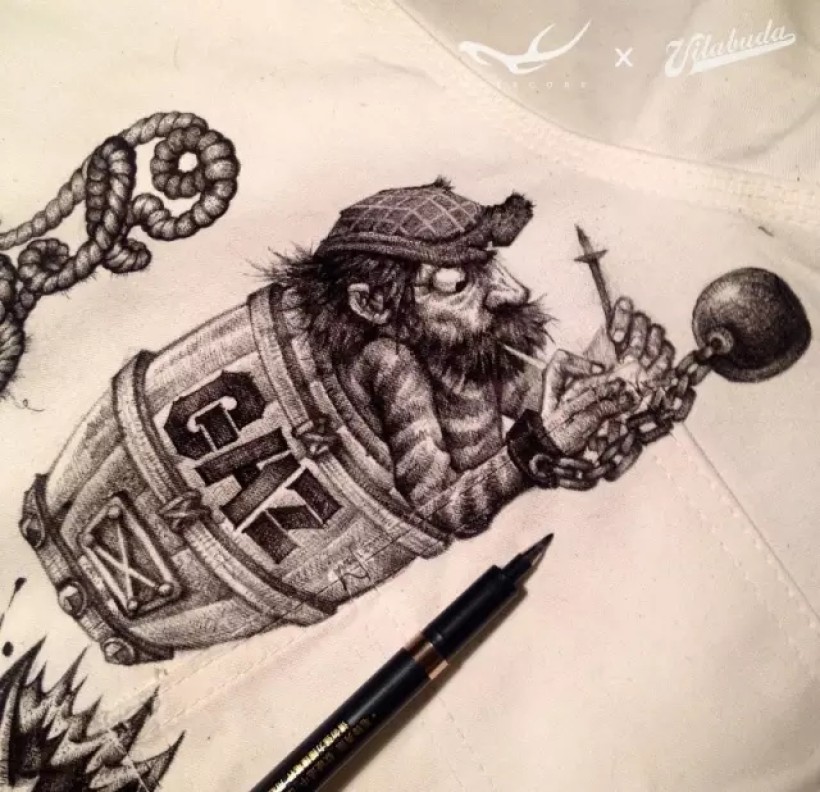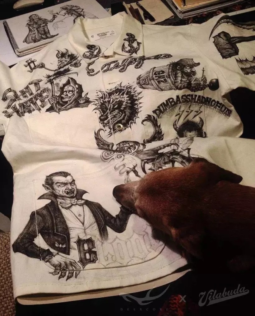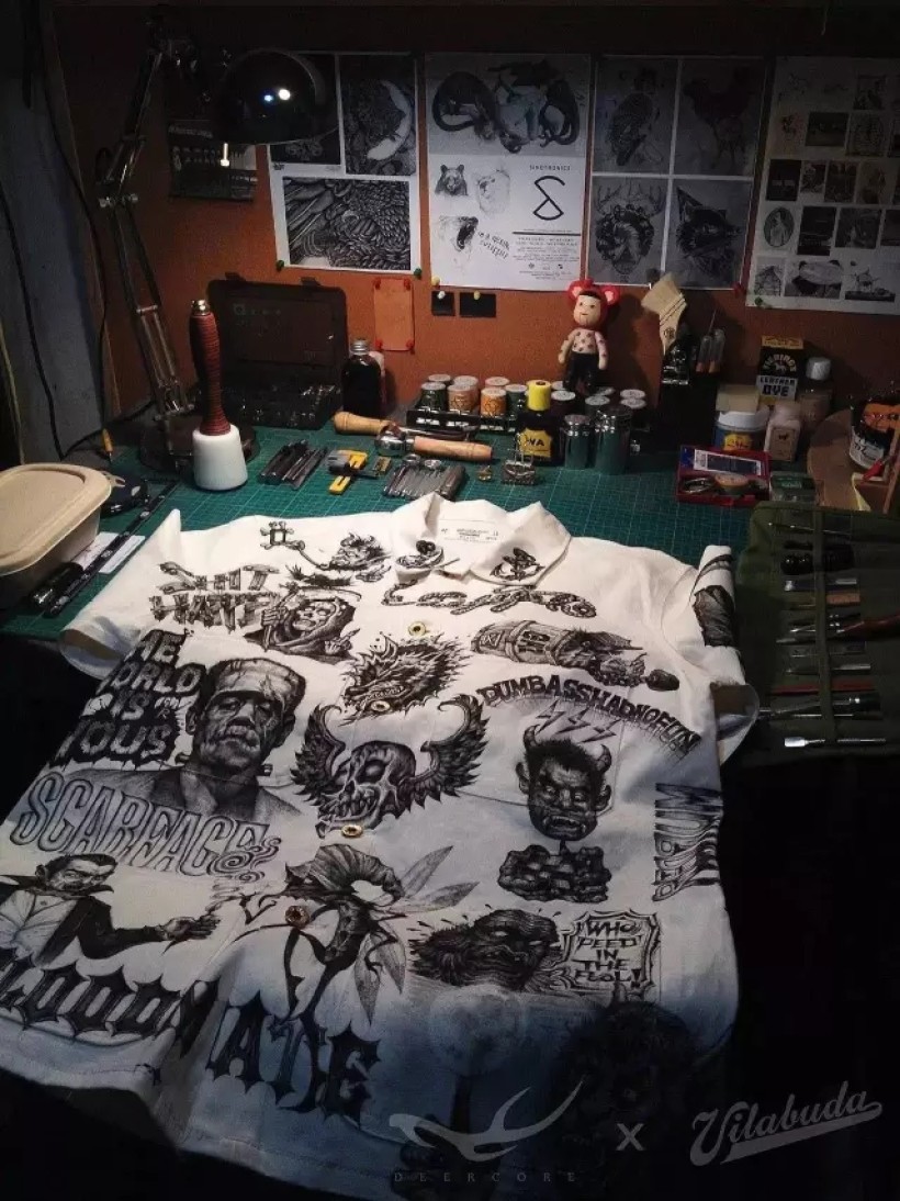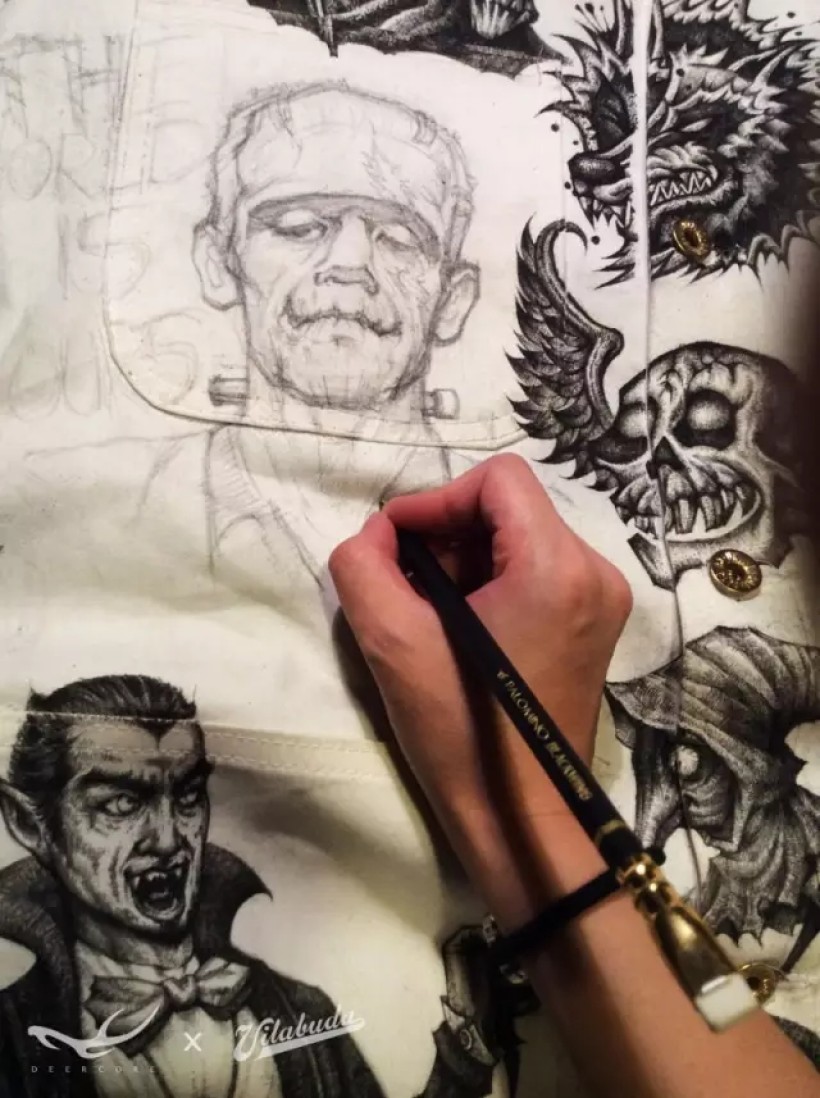 我喜欢服饰,喜欢街头文化,喜欢一切自由开放的表现形式,喜欢在不同的材质上创新。一直计划以服装为载体做一些突破性的创作。机缘巧合,2015年6月我认识了Vilabuda的主理人田桑,这个愿景得以实现。