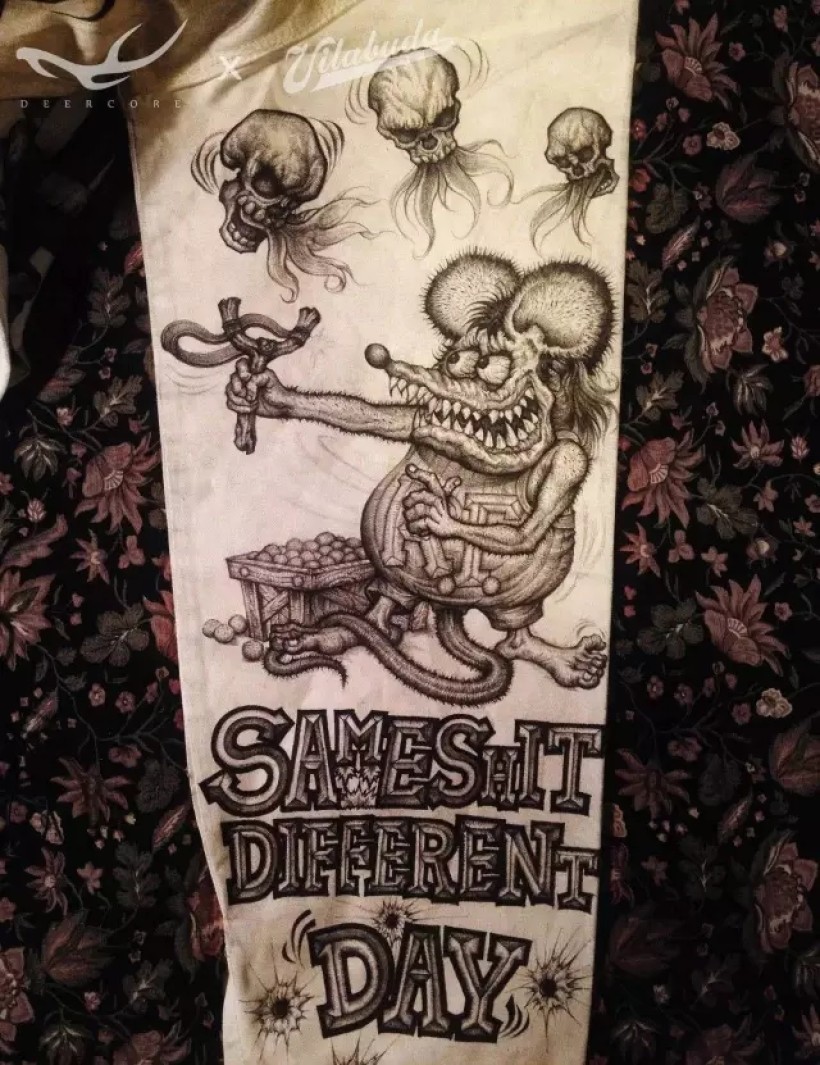 致敬Ed Roth,致敬Rat Fink。烦恼和麻烦就像喷火的骷髅,乐观的人总能找到根合适的猴皮筋儿崩走他们^_^