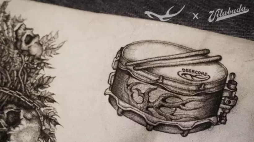 除了画画、设计,业余时间我还是一名鼓手。所以当然要在衣服上画上我最爱的军鼓 :-)