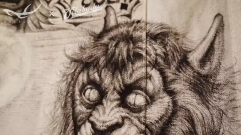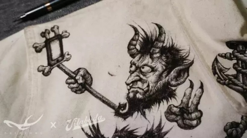 这是个人人爱自拍的时代,魔鬼也不例外。我在衣服左肩下方设计了自拍魔鬼这样一个角色。