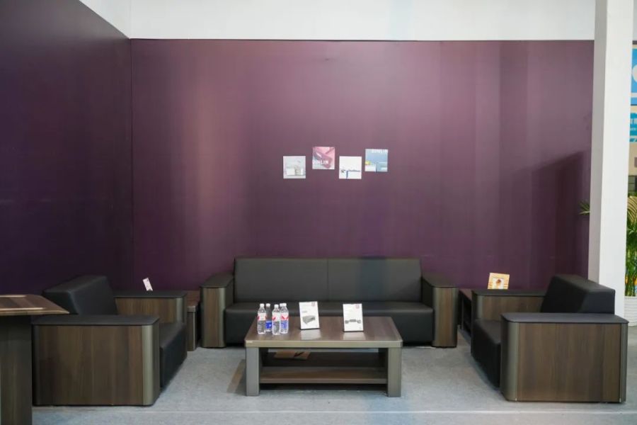 其一,采用无醛、抗菌等环保健康的材料。以本次黎明国际展位为例,同步展出了“爱普莱饰”品牌材料产品,这些产品不仅融合了准分子实木系列、超感分子系列等先进技术,更通过净醛喷粉板等技术,有效提升了办公家具的健康环保性能。
