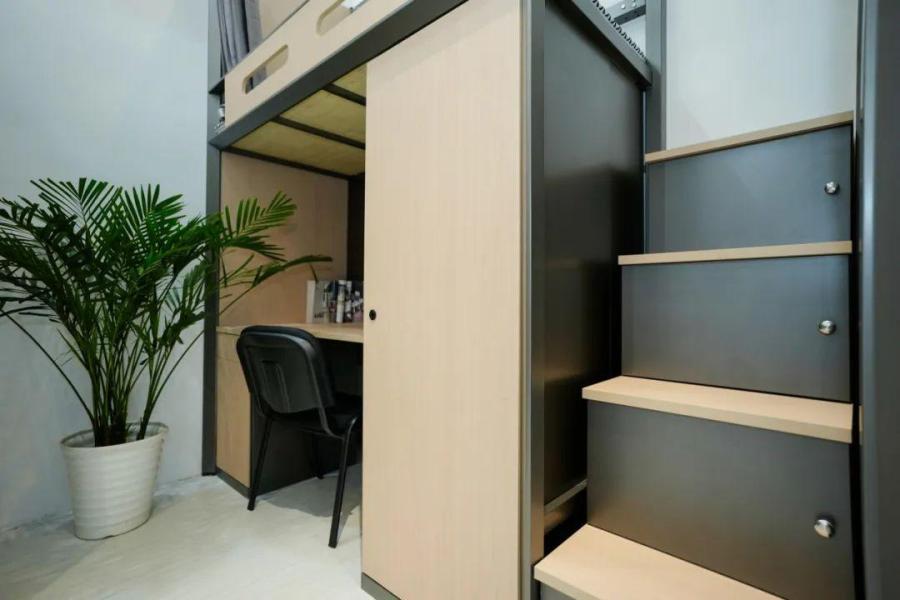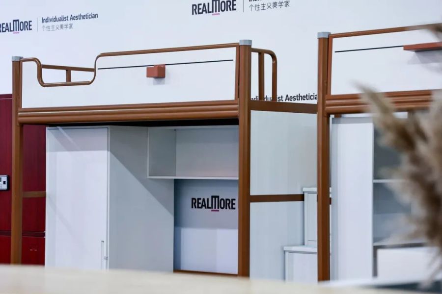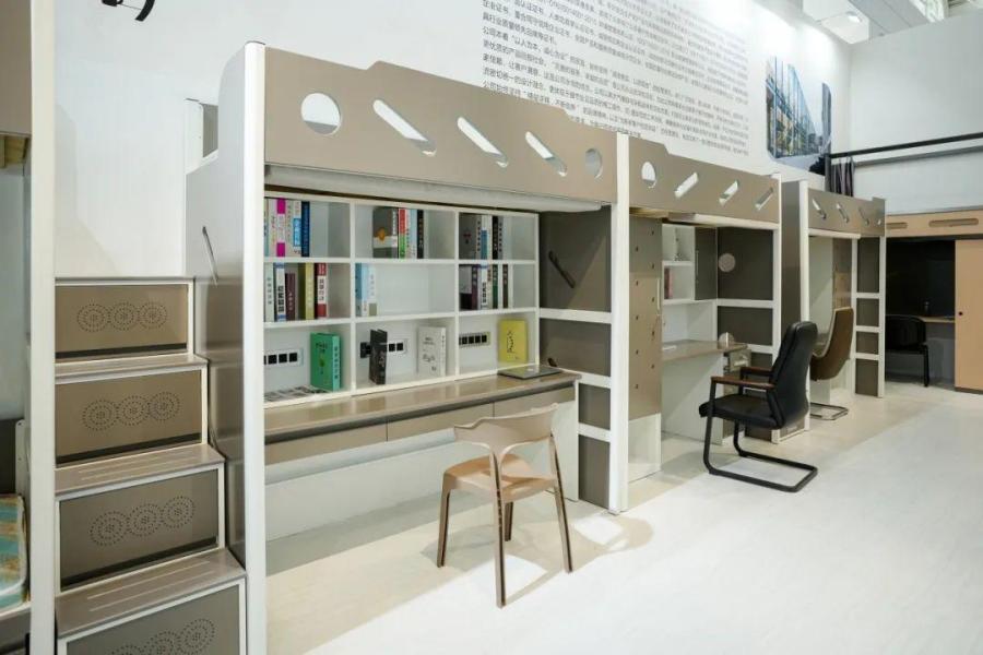 此外,钢制家具在校园家具中的运用也越来越广泛。钢制家具相比于传统的木质家具更加坚固,不易受到潮湿、虫蛀等因素的影响,因而能够更长时间地保持其原有的形态和功能。这对于校园来说,不仅减少了更换家具的频率,也降低了维护成本。例如吉佳本次带来的钢木一体化公寓床,通过选材和减少螺丝组装等设计,避免了不必要的剐蹭。