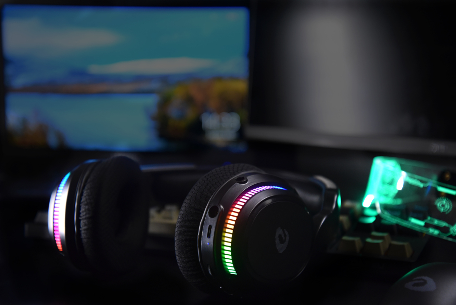 这个耳机的灯光,不知道为什么看起来有点假,可能是因为灯带材质的问题,重点是,这个灯即使环境光很强都很明显又不是刺眼的那种,就很棒。
