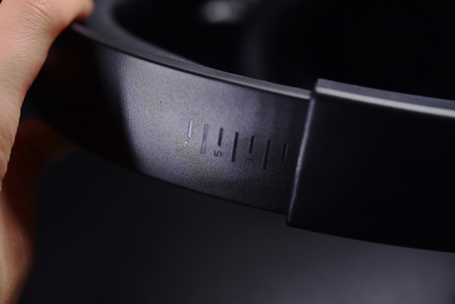 外耳壳90°调节,头梁左右两边都是7档拉伸,头梁内衬的材质和皮质耳罩差不多,厚一点,而且很柔软。耳机净重是335±10g,不是轻量化设计的重量,和有线的EH745比重了不少。
