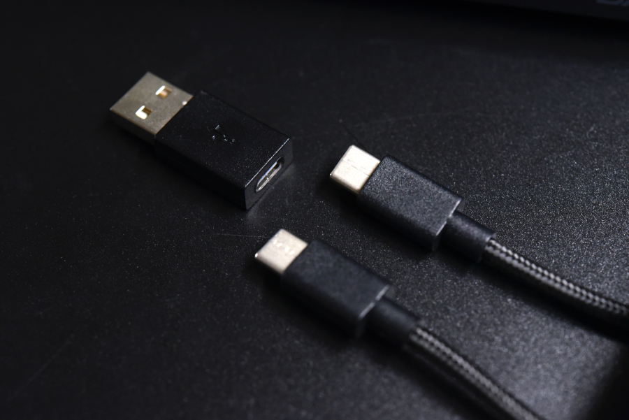 这条神奇的双Type-C头的连接线,配了一个USB转接头,通过这个转接头就可以进行充电了。