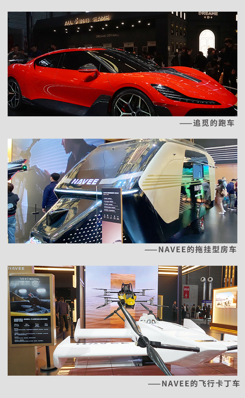 本届AWE参展品类已突破传统家电、消费电子、智能家居、环境电器等家居场景范畴,涌现出行类产品——涵盖电动自行车、电动摩托车、电动汽车、超级跑车、房车、无人工具车及低空飞行器等。上述产品有些是新品牌首发有些是既有品牌的品类拓展,但都呈现设计美学、智能化升级与场景应用的三维融合特征。产品设计语言趋向前卫化与美学符号化,功能配置强化科技智慧属性,其定位已从单纯的移动工具转型为居住空间的延伸载体。