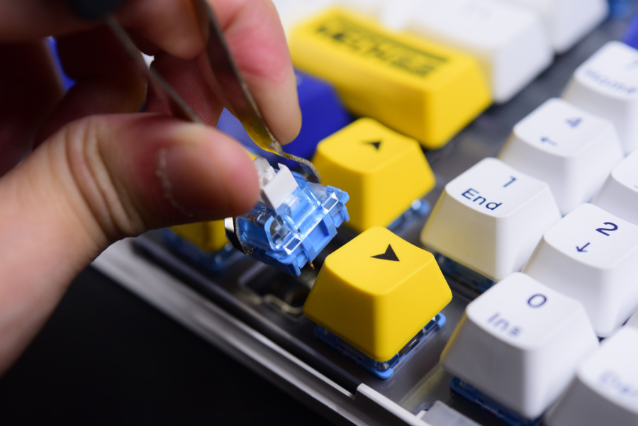 我把F1到F4替换成了线性手感的轴体,F5到F8则换成段落轴,通过我的指头去亲身感受这把键盘的手感。