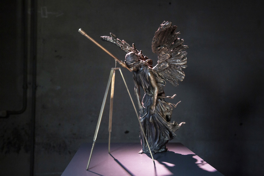 Now that APNEA has dissolved into the memories of those who visited, Berlin is slowly regaining its breath. However, courtesy of Pejac, in one particular spot in town reality is still somewhat turned on its head. The sculpture of a refugee kid on the very top of the Holy Cross Church – an installation put in place mid-October to help raise awareness of both the vital work of Sea-Watch and the fate of refugees – will remain in place until the final day of the year.