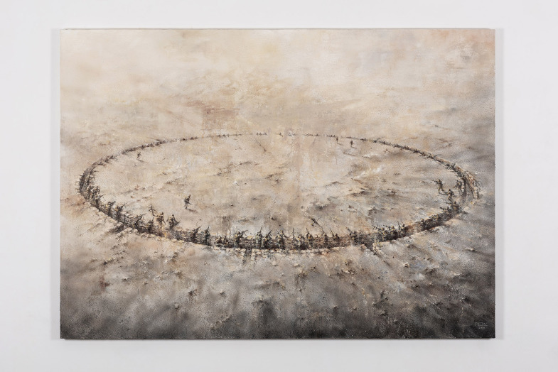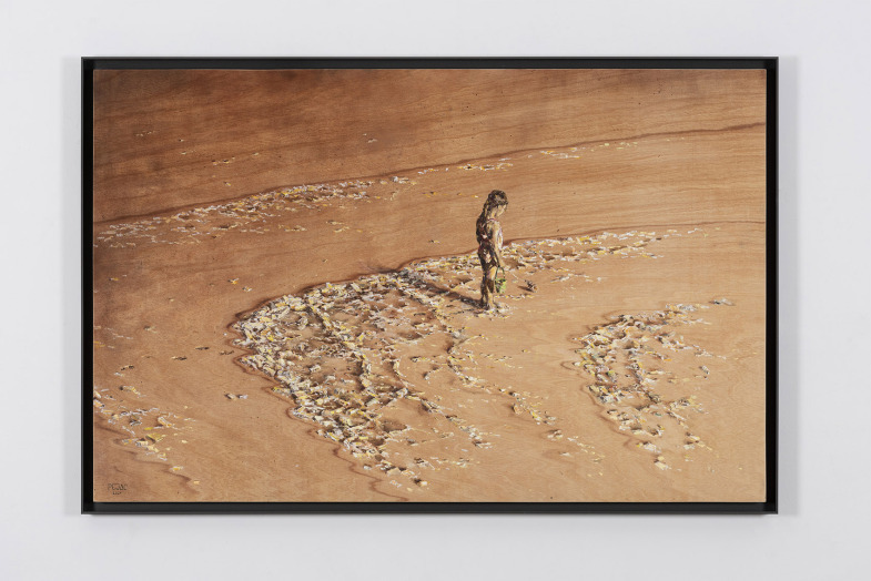 出于对扭转与丰富细节的热爱,Pejac的作品中通常展现出不同层次的复杂性,这也引起了观众间热烈的思想交流,他们好奇自己究竟在凝视着什么。展会期间发布的限量版印刷品“The Boss”便引起了强烈反响,作品售出后,部分收益被捐赠给了德国非政府组织Sea-Watch。