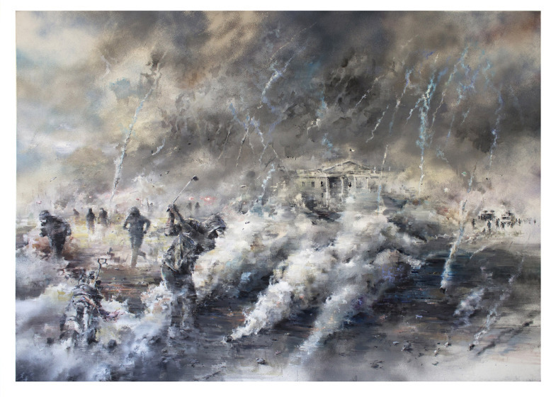 With his love for twists and turns and intricate details, Pejac typically endowed his art with different layers of complexity. This gave rise to animated exchanges of thoughts among viewers who at times were wondering what exactly it was they were gazing upon. This certainly applied to ‘The Boss’, a limited edition print of which was released on the occasion of the show. Proceeds generated through the sale of lottery tickets for the purchase of this highly sought-after limited edition was donated in part to the German NGO Sea-Watch.