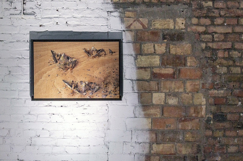 Pejac在八个不同的房间和空间中展出了四十多件形状和大小各异的新作品。其中最小的展品是一个卷笔刀,内部绘制有史前洞穴壁画的图像,需要通过放大镜观看。与之相对,最大的装置是一艘正在沉没的巨型纸船,上方盘旋的折纸海鸥仿佛在捕食冲到海里的货物。