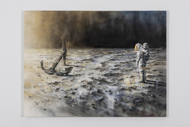 At the tail end of October, a former train manufacturing site in Berlin was home to a unique ten-day exhibition ‘APNEA’. It was Pejac’s fourth self-produced solo show that saw the Spanish artist push his exposition practice to a new level. With large numbers of people from different corners of the globe in attendance, especially on the opening night, APNEA was sold out and ended up being an all-round success.