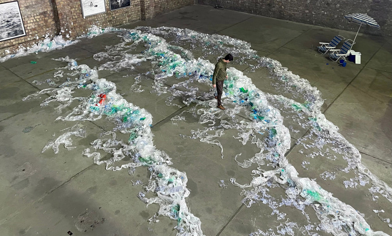 ▼塑料海滩,plastic waste evoking sea waves ©PEJAC