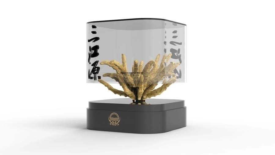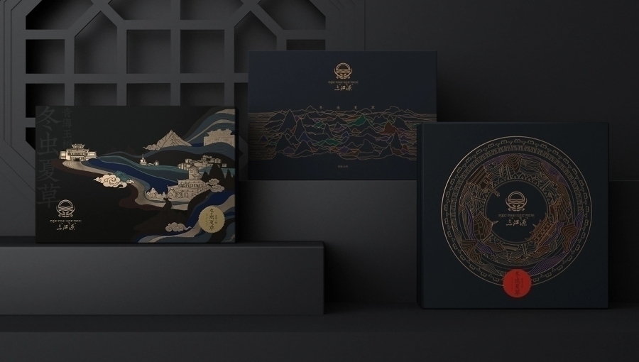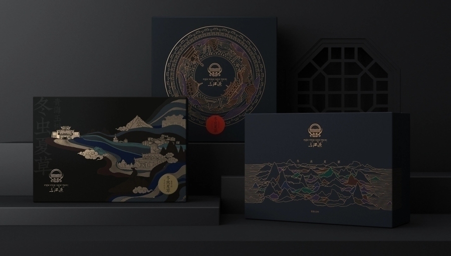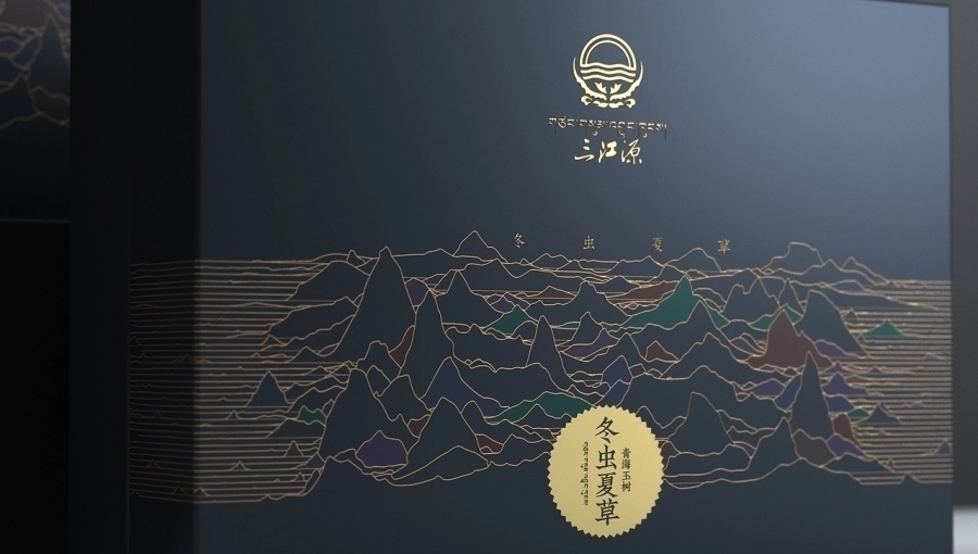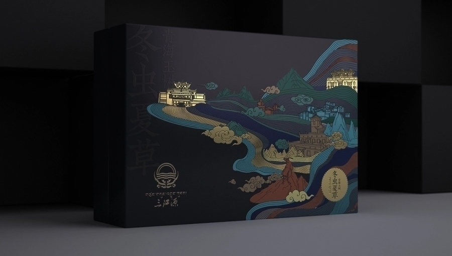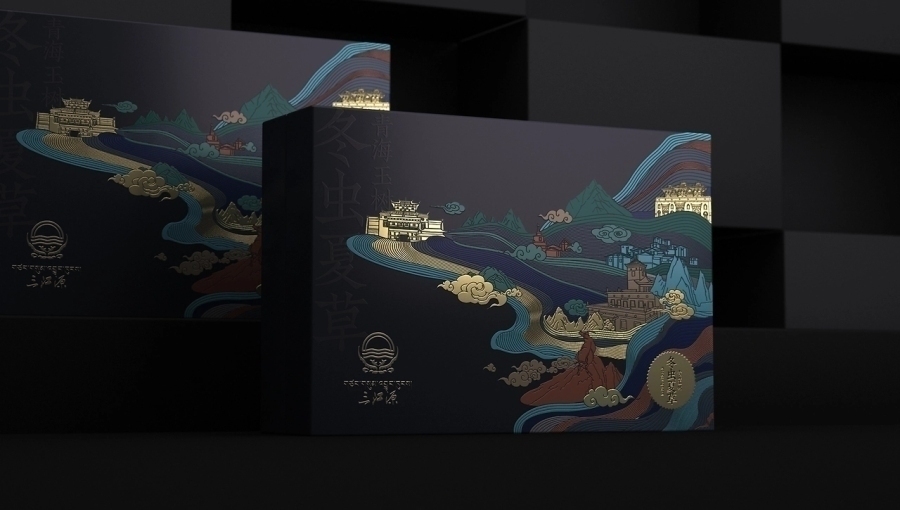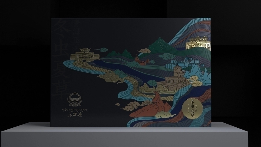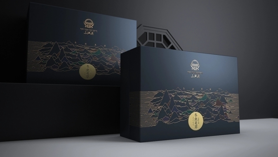在包装设计中,应着重强调产品的自然原料成分和原产地,如“三江源”纯正的虫草原产地和源头,以此构筑消费者的信赖感。
