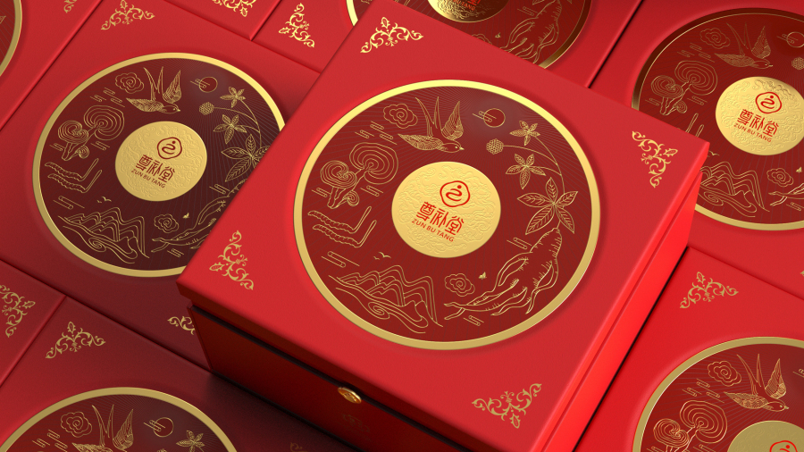 尊补堂贵细礼盒基础款以古典梅花窗格外轮廓,呼应尊补堂LOGO,形成品牌符号贯穿产品包装,寓意着“福气+、健康+、运气+”送礼时给人带来美好祝感!