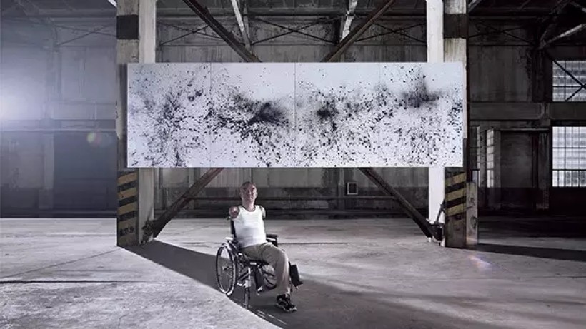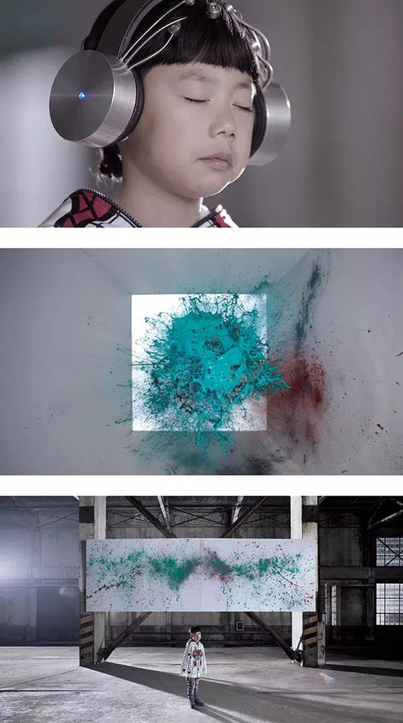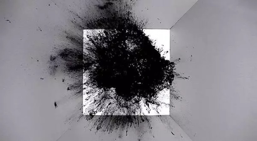 颜料随之炸开,在布上形成变幻莫测的抽象艺术