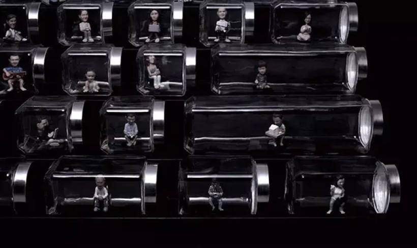装着人物雕塑的玻璃罐