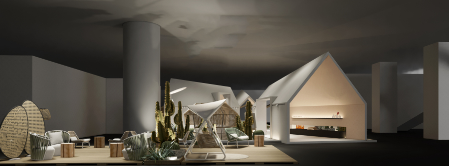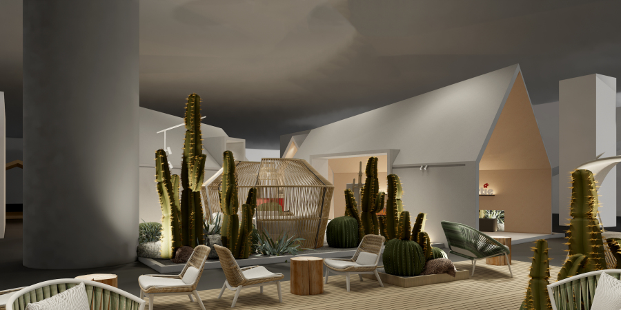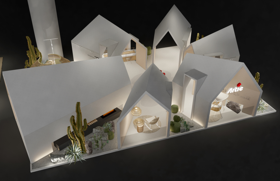 本次亚帝Artie将以“亚帝之花–绽放”为主题亮相,利用绽放的效果进行有序区分,形成展览的空间,构筑出院落的感觉。六个大小不一的房子结合绿植构建出多元的户外生活场景,实现一步一景的观展体验,在气味装置与空间视觉的感官指引下,让观众感受家连结自然的温度,表达“重新定义家——家即是度假的地方”的品牌主张。