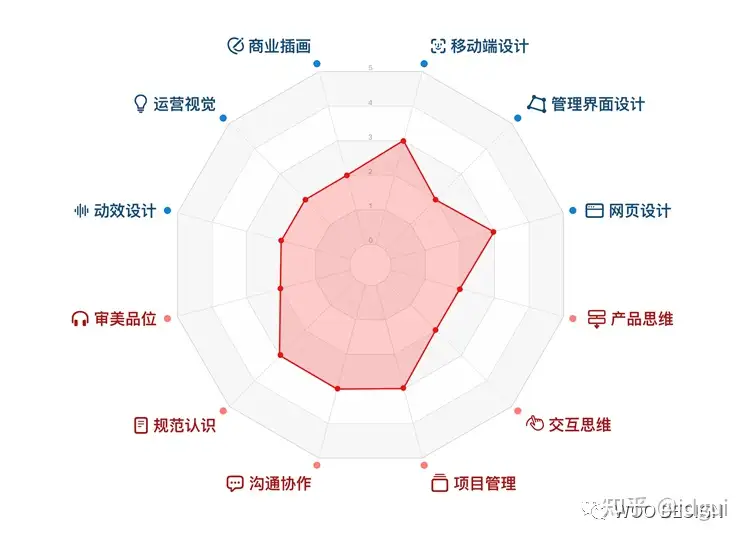 我们要如何让自己工作经验与工作经历保持平衡甚至超越自己呢?首先我们要对设计师这个职业有所认知,我们的知识体系的构成是什么?