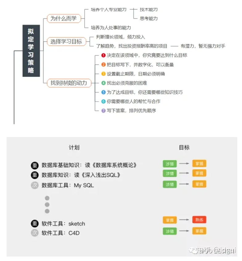 因此,我们在制定计划时,要取舍和平衡。比如我不熟悉C4D软件使用,但我觉得数据库知识对我现在来说更重要,那我就会选择把这部分优先补充完