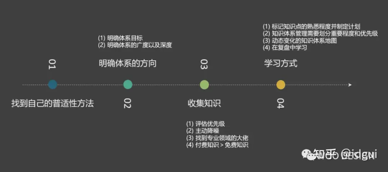 整体分为4步:找方法、建框架、收集知识、学习方式