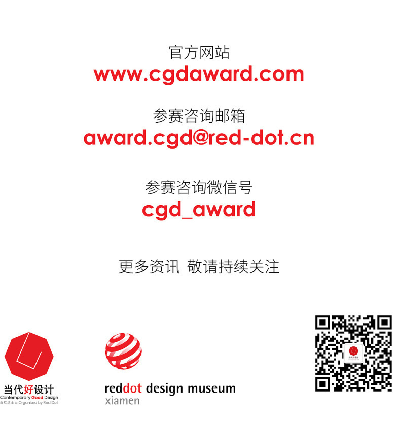 如对以上信息还有任何问题,欢迎查阅「CGD当代好设计」公众号内的相关信息,或点击www.cgdaward.com访问官网,同时欢迎添加参赛咨询微信号详细咨询。