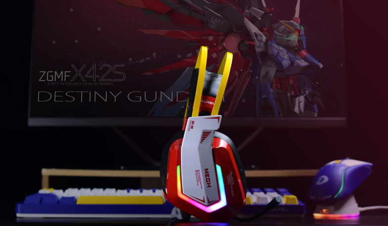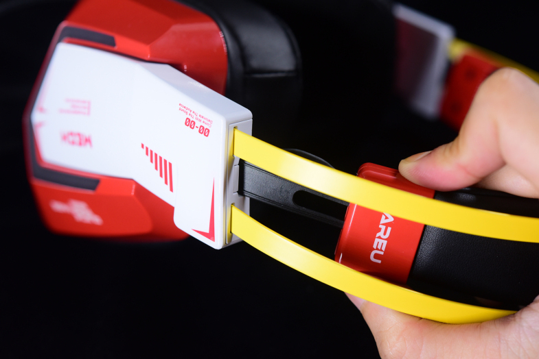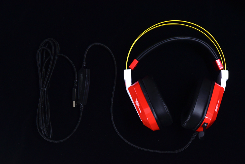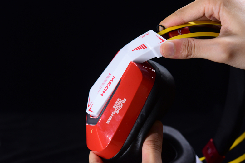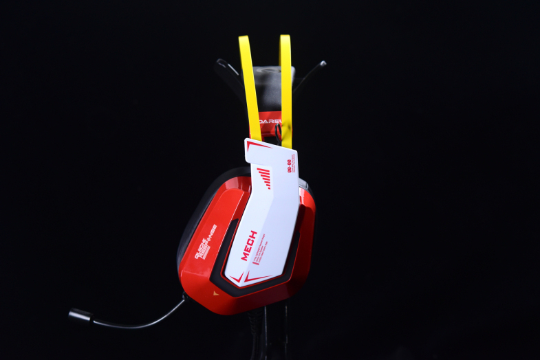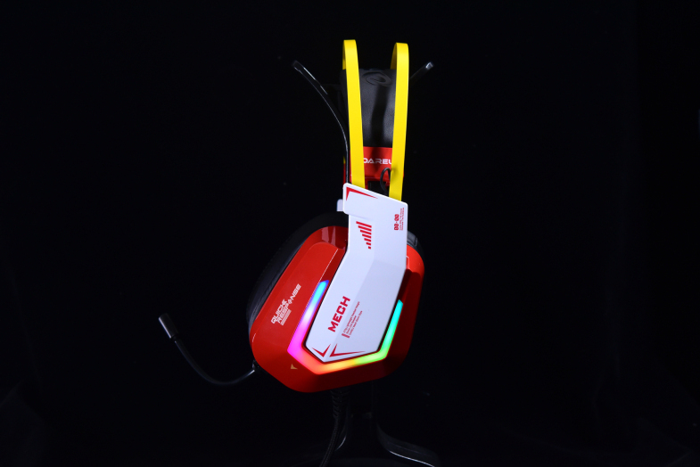 包装内并没过多的配件,纯纯的一个耳机(有线连接),耳机配色叫烈焰红,但其实说是红色的机甲版更为贴合。