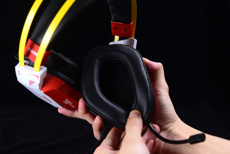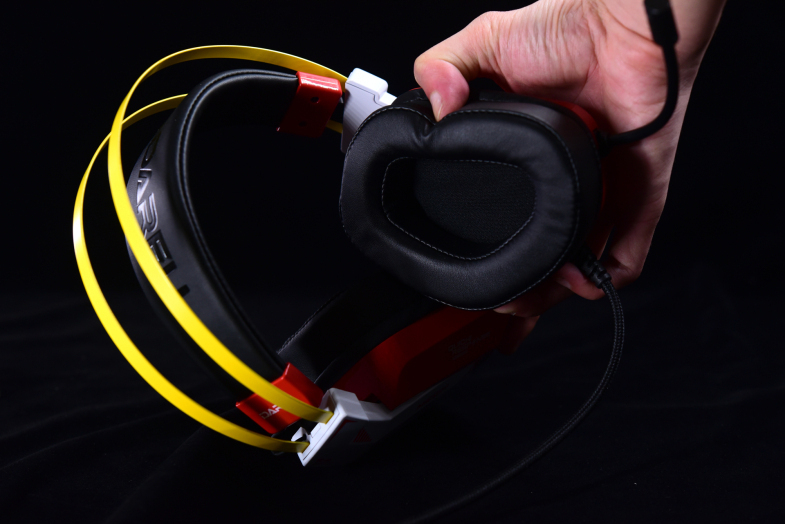 虽然没了魔音盒,但新版的EH732却有一个很炫的RGB灯光,灯条位置在头梁和耳壳连接的位置,视觉效果还是很不错的