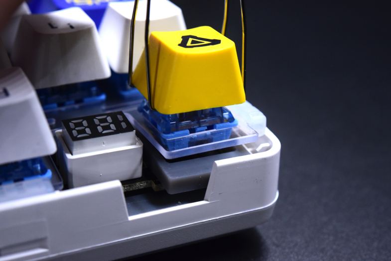因为内部填充材质都是具有一定的韧性,个人感觉相对于铁制定位板的机械键盘来说,这把A98更适合线性轴,大力金刚指下压后可以看到PC定会产生一定形变,不像钢板那么硬邦邦。