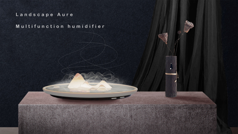 造型灵感来源于“山水之间”;让加湿器也中式化,不仅仅是电器,更是一个装饰小品;具有香薰,氛围灯,加湿多重功能。