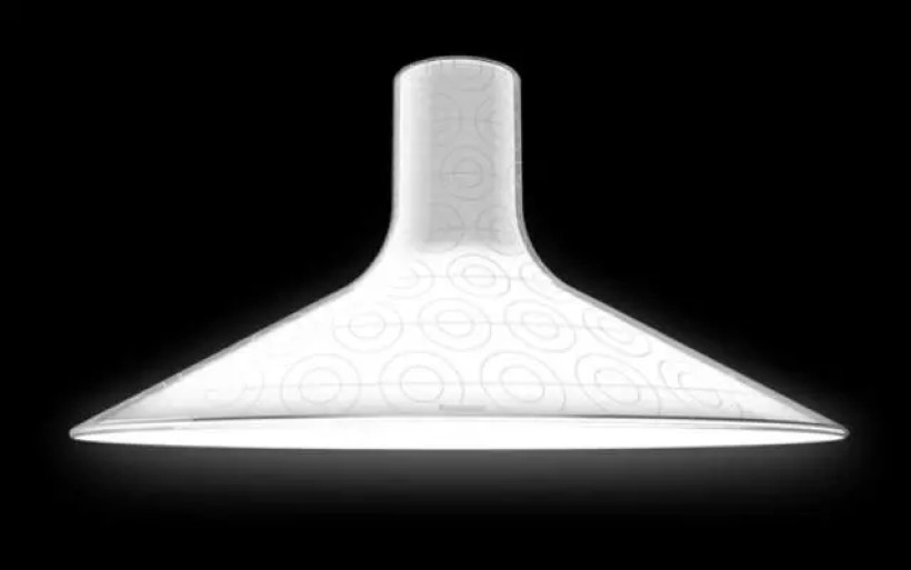 在灯壁的上下两件中,夹入一块玻璃件,让装饰件拥有类似导光柱的功能,使光线从侧面折射出来,形成一圈光环。让这款简单的吊灯变得更酷了。