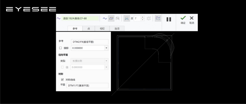 8、再次进入造型工具,创建美学圆角,注意使用对称曲线