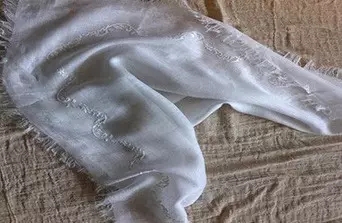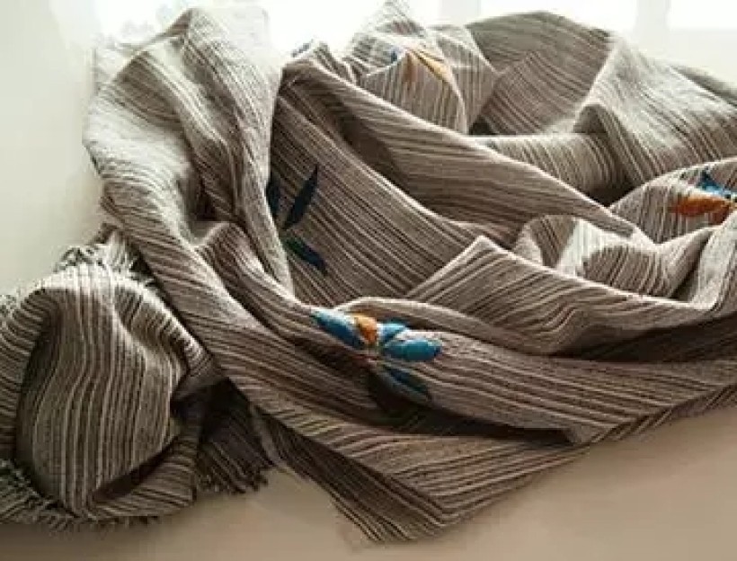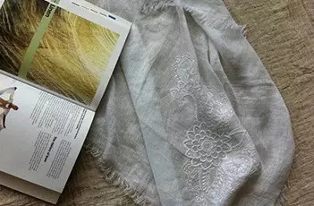我做的围巾都是用最自然的材质,丝,棉,麻,毛,大多是的布料是偶然的机会收藏的,很多只有三,五米,有时只有几十公分,棉线都用得是法国的DMC, 最纯正的染色,朴实的品质,这些围巾都大小不一,针法各异,不完美,但无求,无华,独一无二。有时候,我会把我做的围巾安安静静地摆放在一起,沏一壶茶,在午后的阳光下满足地看着她们,看她们温润如玉的光泽,内心丰盈而欢喜。