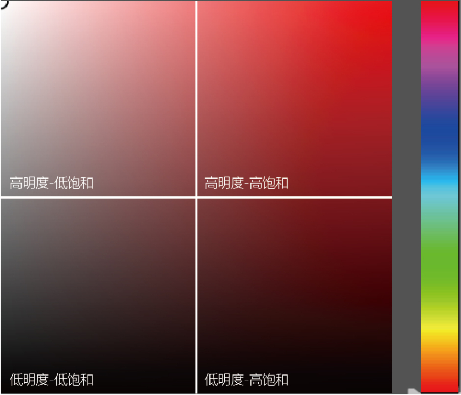 基于色彩三元素的基本概念,色相、明度、饱和度都可基于某一元素的固定不变,调整其它元素的增量比例,使色彩之间产生较为明确的内在联系,增加共性内容,达到调和效果。