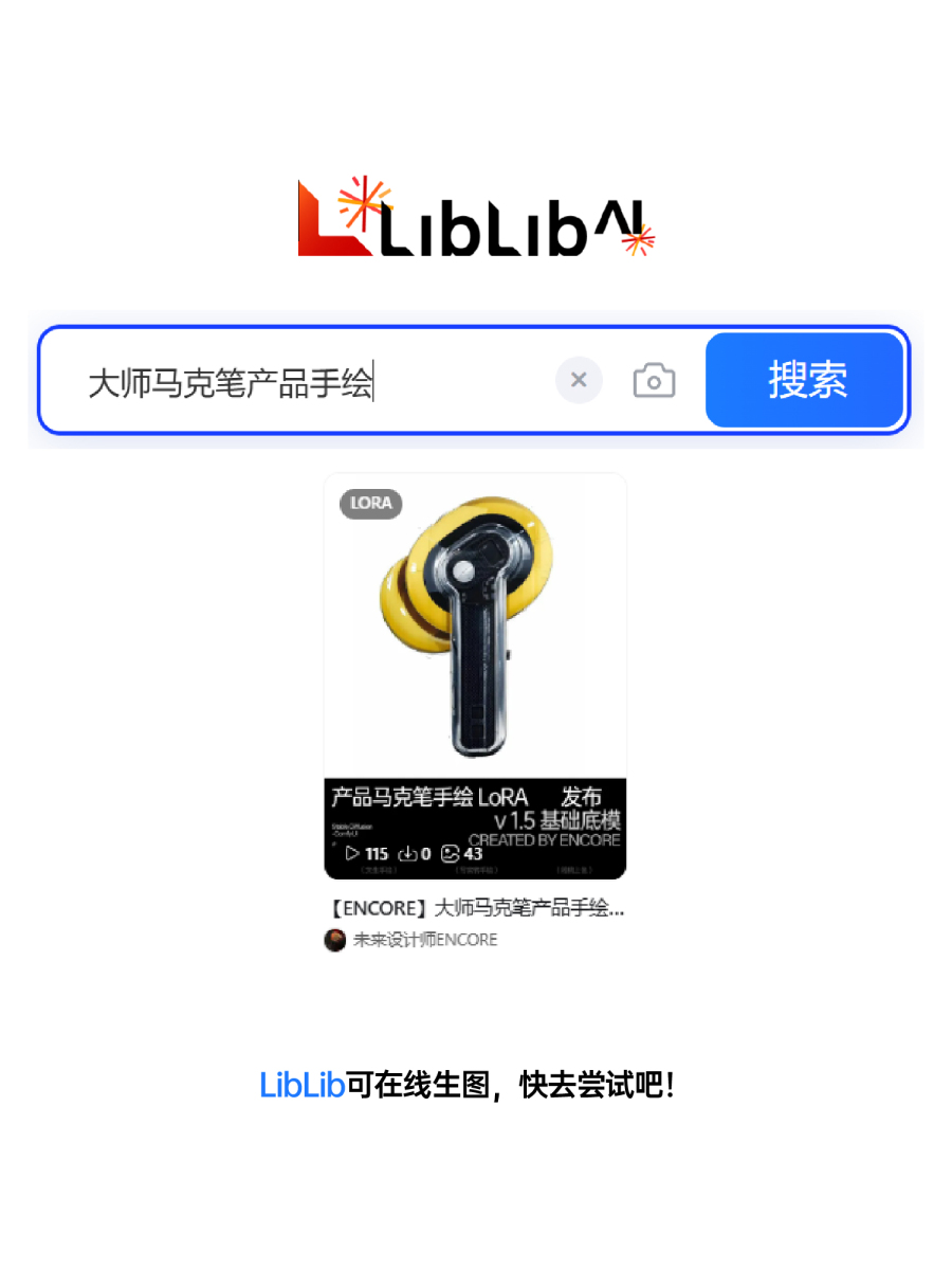 【ENCORE】大师马克笔产品手绘 LoRA——LibLib在线生图链接:
