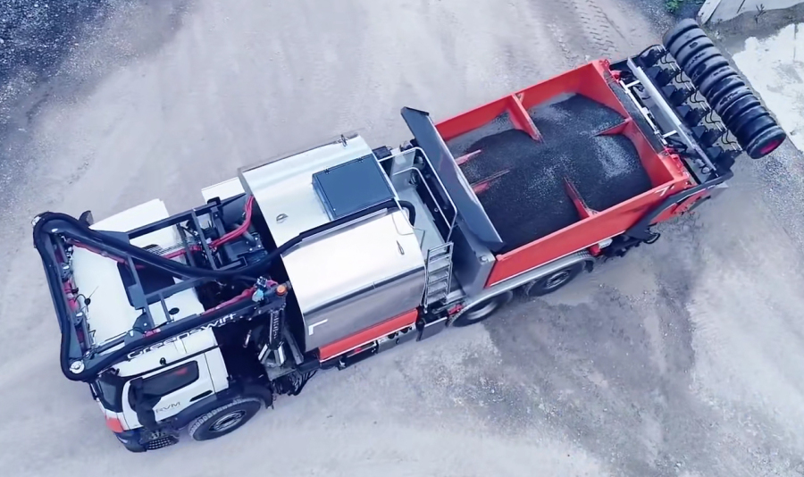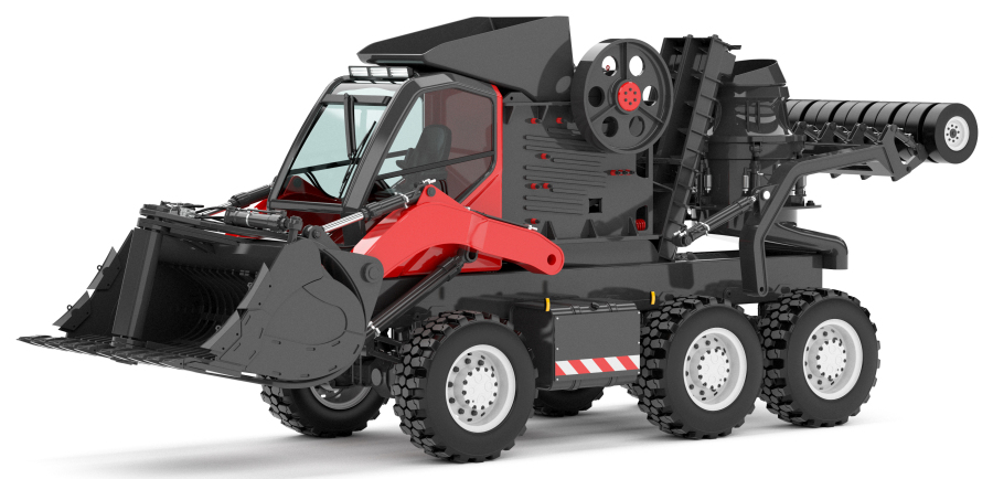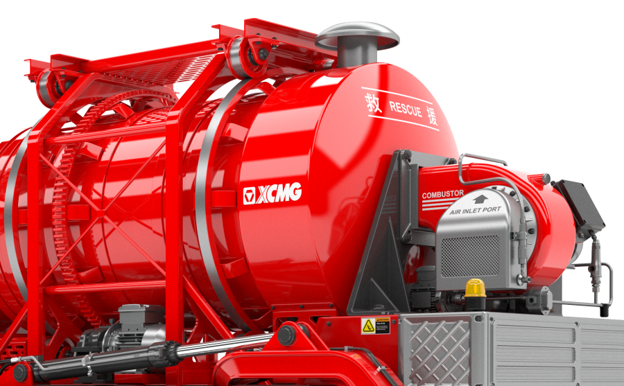 相比之下,干燥车就好做一些,它车上的组件只有干燥筒和燃烧器。而收集泥浆,只需要用半封闭式的铲斗加上螺旋送料杆,就能把泥浆抽取到干燥筒中了。