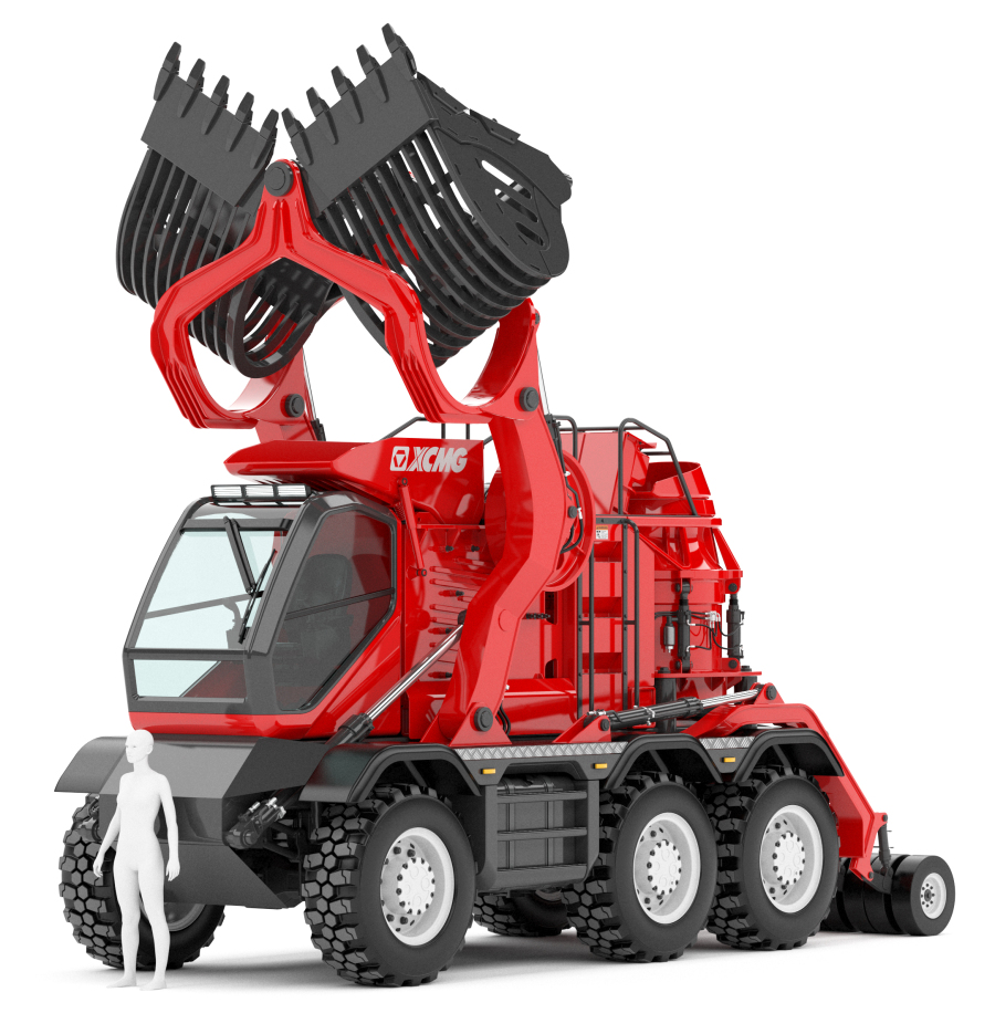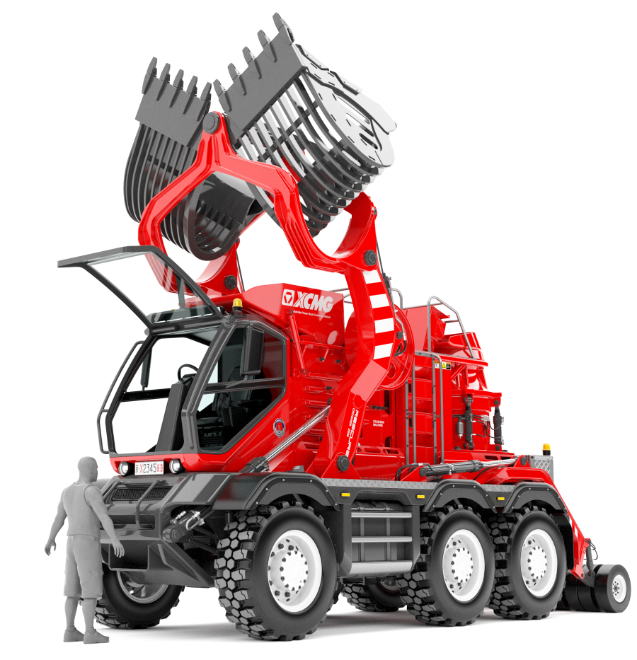 我把铲斗举上去,查看它的运动轨迹。同时露出了车头的部分。这里还没有设计。但这里主要问题并不是外观,而是驾驶员如何进入驾驶室的问题。所以更多的是要考虑攀爬的安全性。