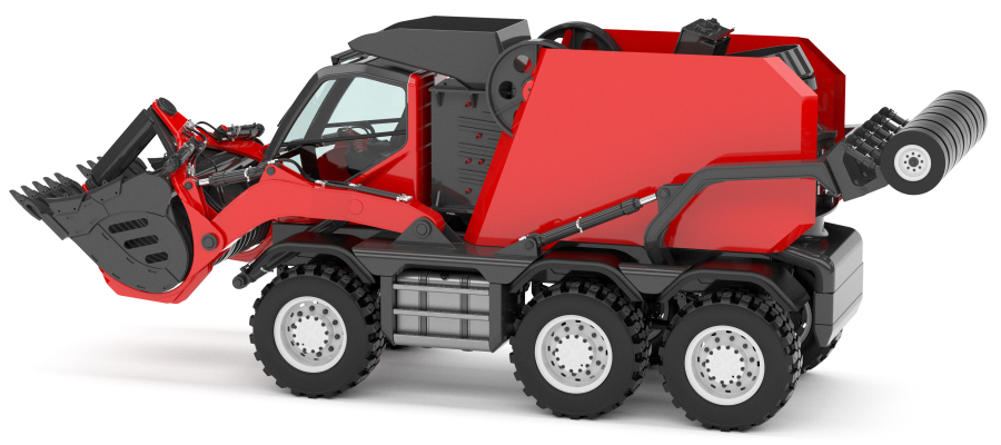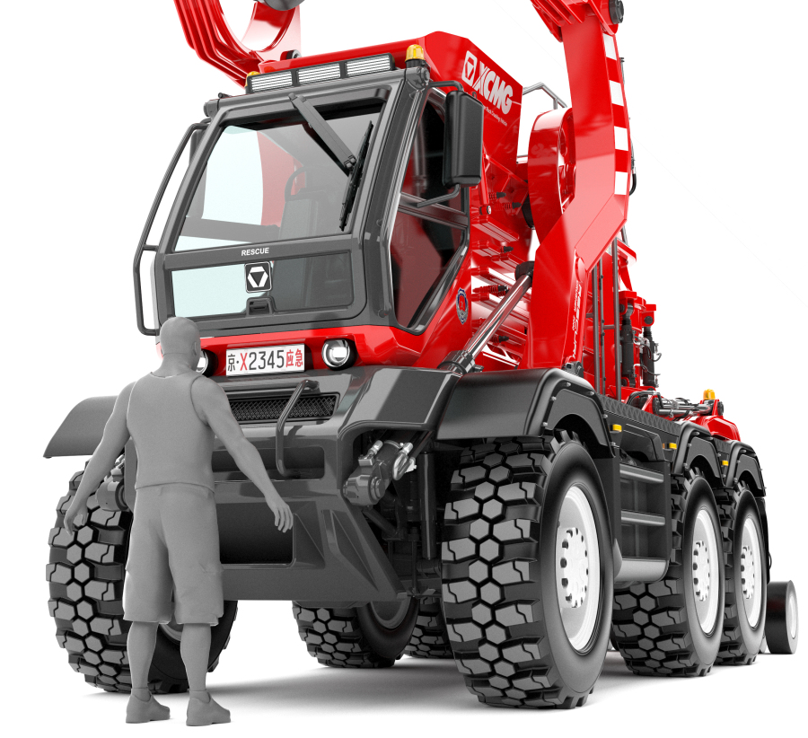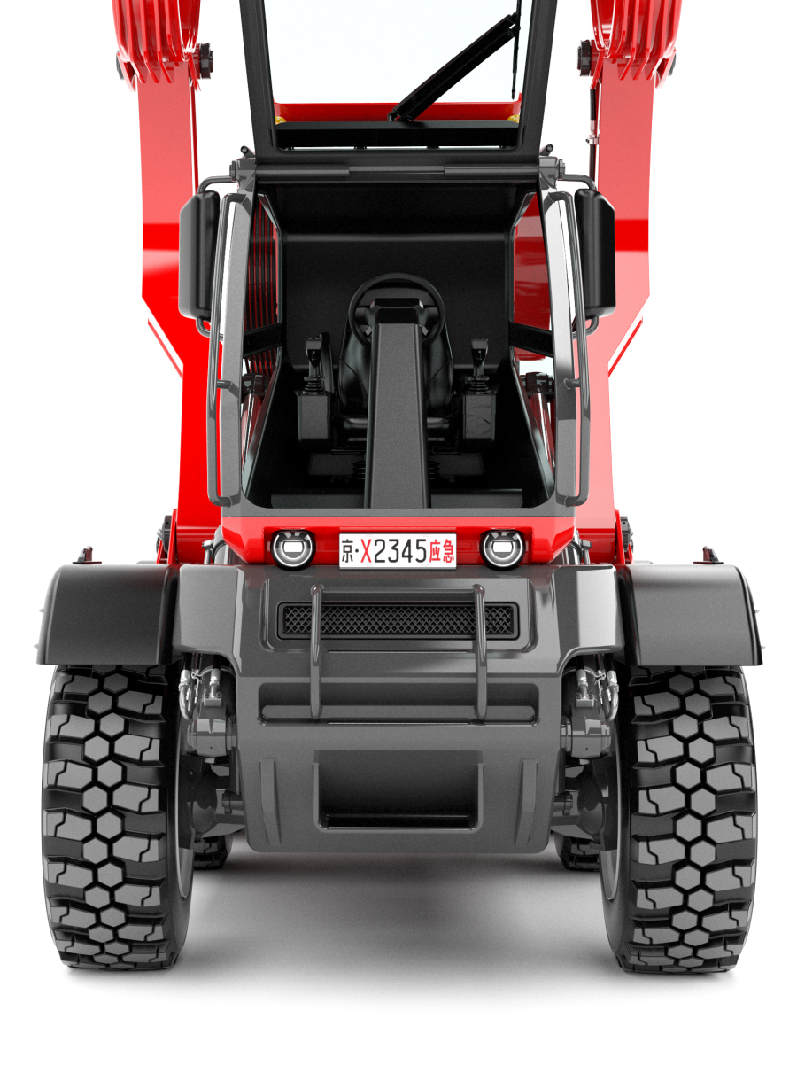 如果你细心可能发现了上图中,我还修改了别的东西。我确实运用了上一个作品的底盘,全轮转向,全轮驱动,它依然适合救灾现场。但是轮胎就不适合了。于是我参考了砂石场装载机的轮胎,修改了车辆的轮胎类型。