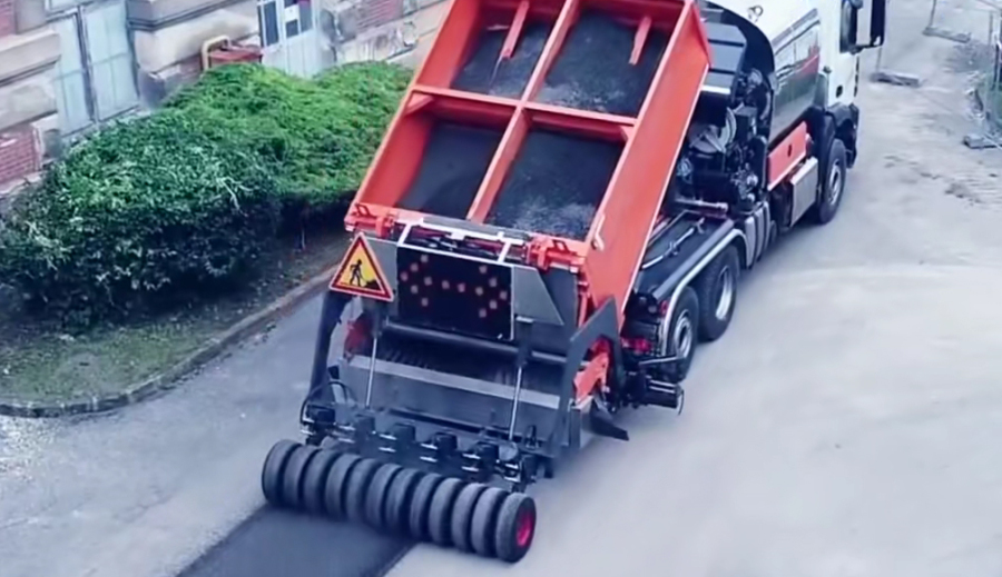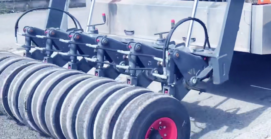 不过我运气很好,在搜索视频的时候,看到国外的沥青喷洒车,带有这种辅助压路轮。可以起到压实路面的作用,还可以根据情况,调节压力。于是我也照着做了上去。