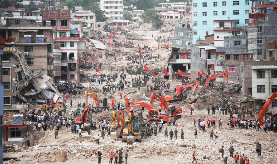 看到现场救援的图片还是非常震撼的。你可以看到大多数情况都是部队徒步进入救援,虽然有很多挖掘机在工作,但看上去应该是灾害发生很久之后的情景了,因为挖掘机不可能高速到达现场。