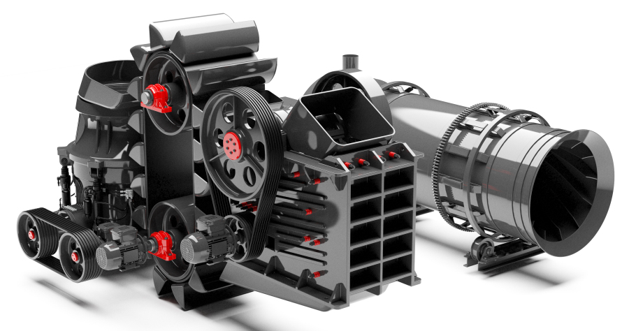 首先我需要碎石机和干燥组件的三维模型。没想到网上真的有下载。