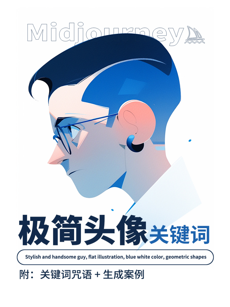 最近在研究midjourney如何生成极简风格头像,试了很多词,