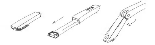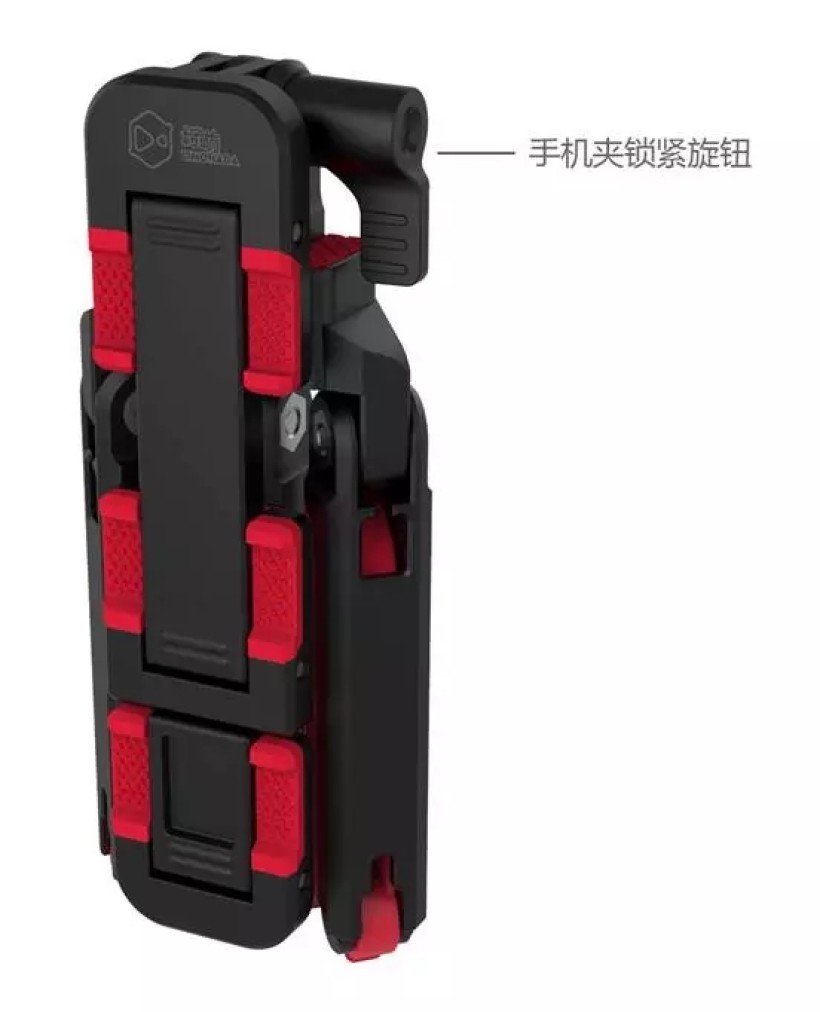如何小巧?手机夹采用目前广泛使用的一种方式,自拍杆里比较常见,就是一种可以收纳成薄片的结构方式,就是这种