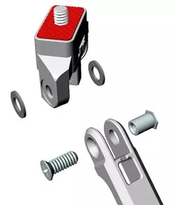支撑腿的转轴用什么结构?这三条腿需要承受一定重力,要有足够的阻尼,转轴很小,也不可能用现成的转轴配件,卡扣方式的转轴受力太小,所以只能用螺丝锁紧,中间摩擦面加橡胶垫圈增加阻力,每个转轴需要两个,并且要带背胶的,方便装配。