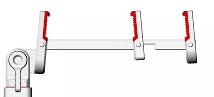 下图这个位置的锁紧旋钮用单臂设计,力臂长,省力,收纳时又不影响外观尺寸