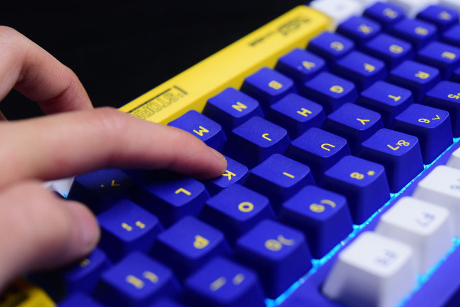 换完键帽之后,感觉整个键盘就更醒目了一点,亮黄色键帽的点缀下,感觉有内味了。