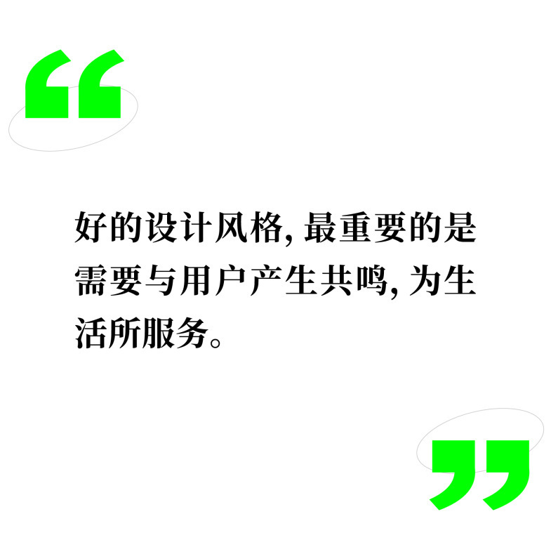 我认为好的设计风格,最重要的是需要与用户产生共鸣,为生活所服务。无论是材料、工艺,还是性价比等都需要与生活结合,让用户能有美好的感受。