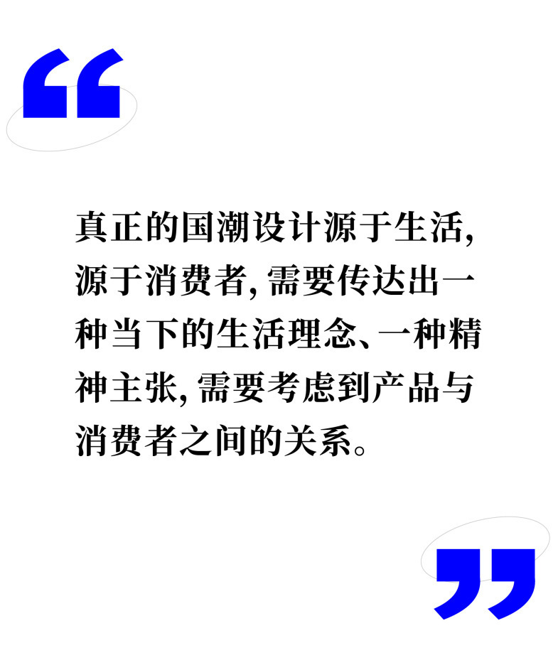 真正的国潮设计是源于生活,源于消费者,需要传达出一种当下的生活理念、一种精神主张,需要考虑到产品与消费者之间的关系。总体来看,我认为国潮设计是一个向好的趋势,能够通过设计赋予消费者对幸福和美好的感知。但不足在于,如今的国潮设计更在意形式,而忽略了实际的消费体验和产品的使用感。表面功夫做得足,但内在的提升很少。