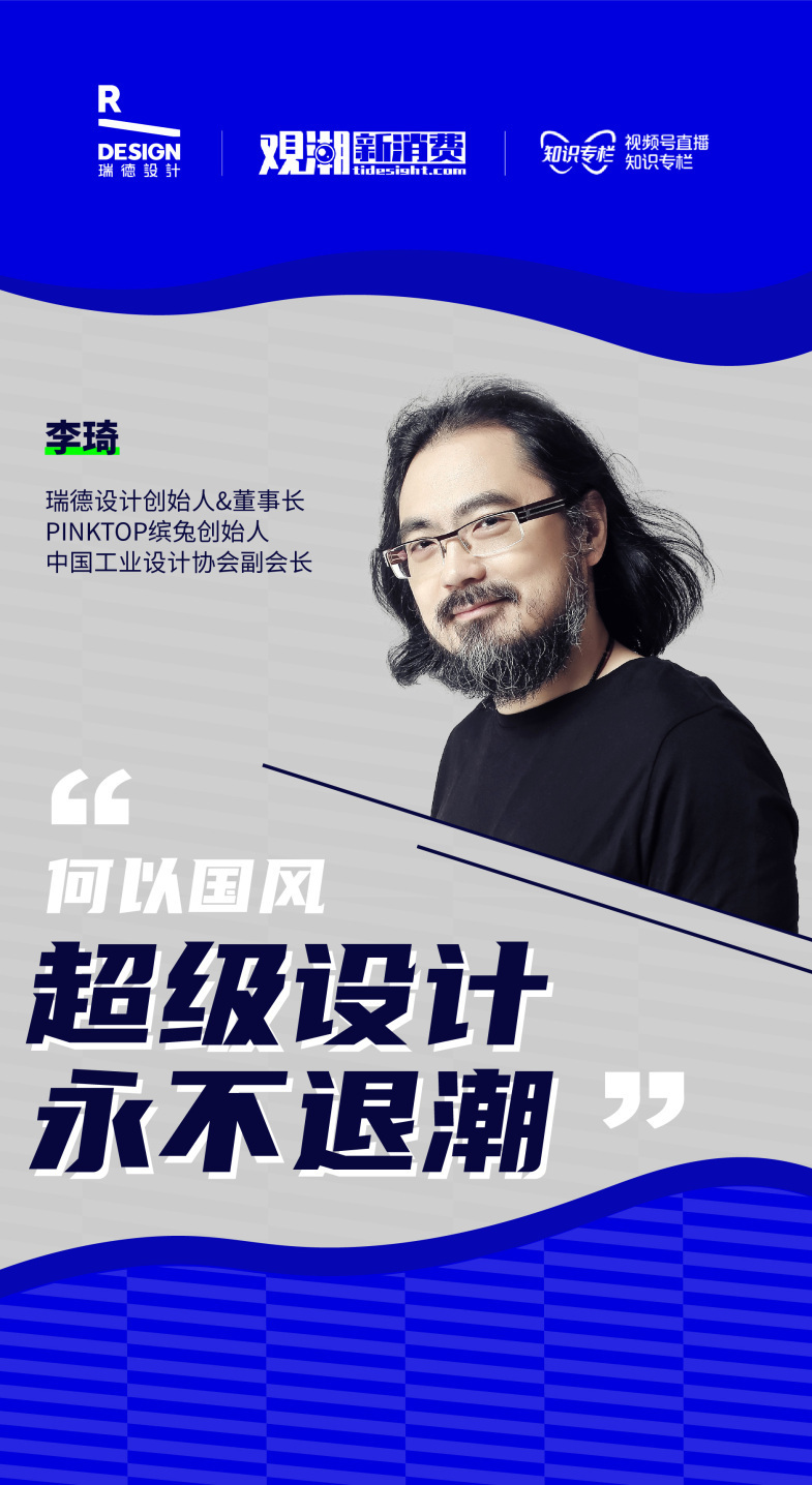4月29日,瑞德设计创始人兼董事长、PINKTOP缤兔创始人、中国工业设计协会副会长李琦做客观潮新消费(ID:TideSight)《观潮者》直播间,共同探讨「何以国风?超级设计永不退潮」。