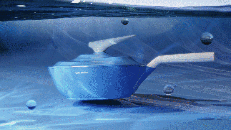 以我们为卡特马克设计的锅具为例,通过对美好生活及大自然的情境联系,我们提取海浪、鲸鱼、枫叶、唱片等视觉符号,打造了海浪锅、鲸鱼锅、唱片锅、枫叶锅等具有独特外观记忆的系列锅具,通过高颜值又有趣的设计让做饭也可以赏心悦,让沉闷的厨房瞬间变得生动鲜活。